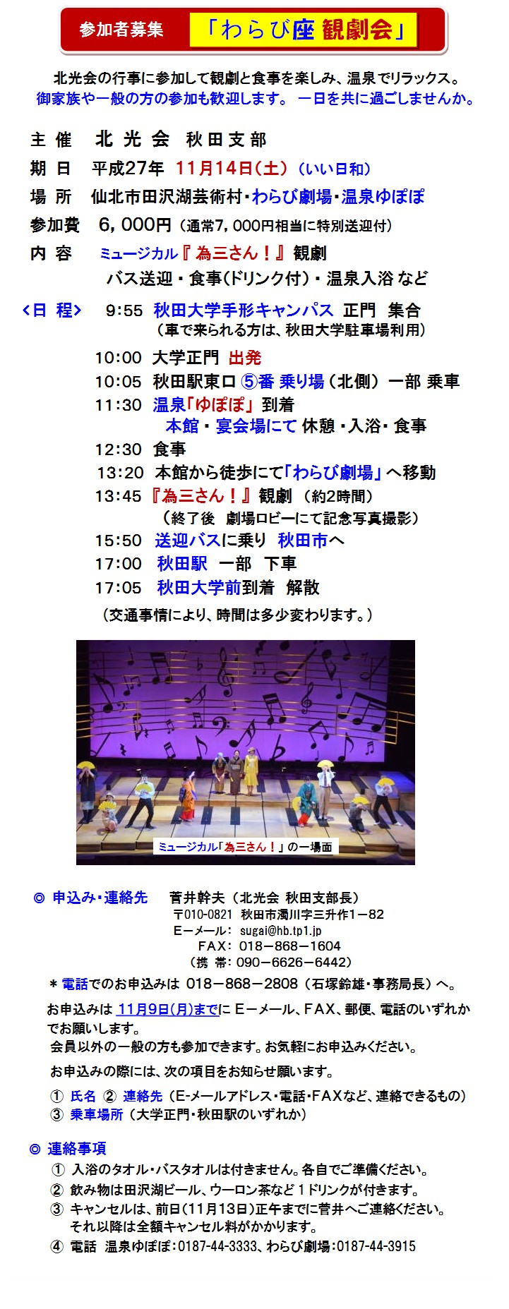 秋田支部 「わらびざ観劇会」のご案内(11月14日(土))